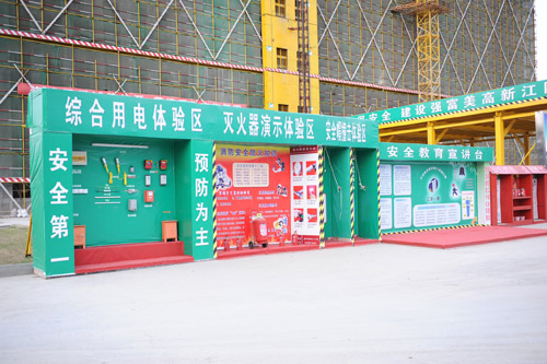 公司新建業(yè)務(wù)用房設(shè)有安全教育體驗區(qū),包括綜合用電體驗區(qū)、滅火器演示體驗區(qū)、安全帽撞擊體驗區(qū)及安全教育宣講臺等功能區(qū),從視覺、聽覺、觸覺方面讓施工者提高自我安全意識,提升突發(fā)事件應(yīng)急處置能力,確保安全施工。