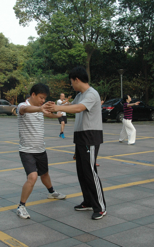 高溫繼續,而學員們的熱情也持續著。有別于初始階段的動作掌握,學員們開始追求意、氣、形、神趨于圓融一體的境界,追求人與自然的融洽和諧。每一個姿勢,學員們都力求完整,每一個動作,都調整吐納。沒有一絲風的三伏天,學員們汗如雨下。衣服濕了,汗水流進眼睛刺痛了眼球,但他們仍堅持著,沒有人偷懶懈怠。