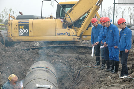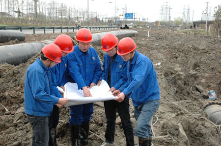 閥門終于關上了,大水控制住了,接下來是清除破損的水管,然后接管、打麻、塞水泥......盛夏季節,黑色馬路上難耐的高溫,烤得人頭昏腦zhang,周松慶和隊員們早已經汗流浹背,精疲力竭。工程正在緊張地進行,大家心里默念著,就早一分鐘完工通水,就讓用戶少一分麻煩。